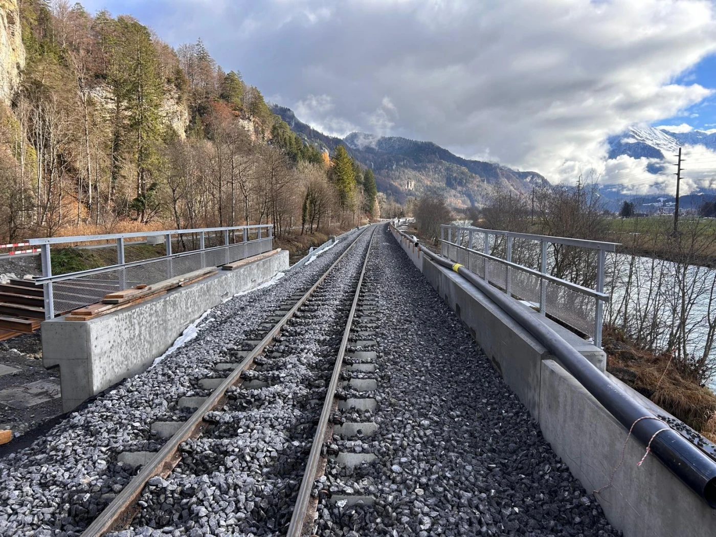 Auf der Strecke zwischen Meiringen und Interlaken Ost werden verschiedene Teilprojekte umgesetzt. In Meiringen wird der Oberbau der Gleisanlage zwischen der Bahnhofsausfahrt und der Hausenstrasse saniert sowie die letzte Etappe des Totalumbaus Junzlen realisiert. In Brienzwiler wird das gesamte Bahnhofsareal umgebaut, in Brienz wird der letzte Streckenabschnitt vom Hegerweg bis zum Bahnhof Brienz saniert, in Niederried eine neue Kreuzungsstelle eingebaut und in Interlaken Ost ein Teil der Gleisanlagen umgebaut. Aufgrund dieser Bauarbeiten wird die Strecke zwischen Meiringen und Interlaken Ost vom 13. Oktober bis 21. Dezember 2025 gesperrt.