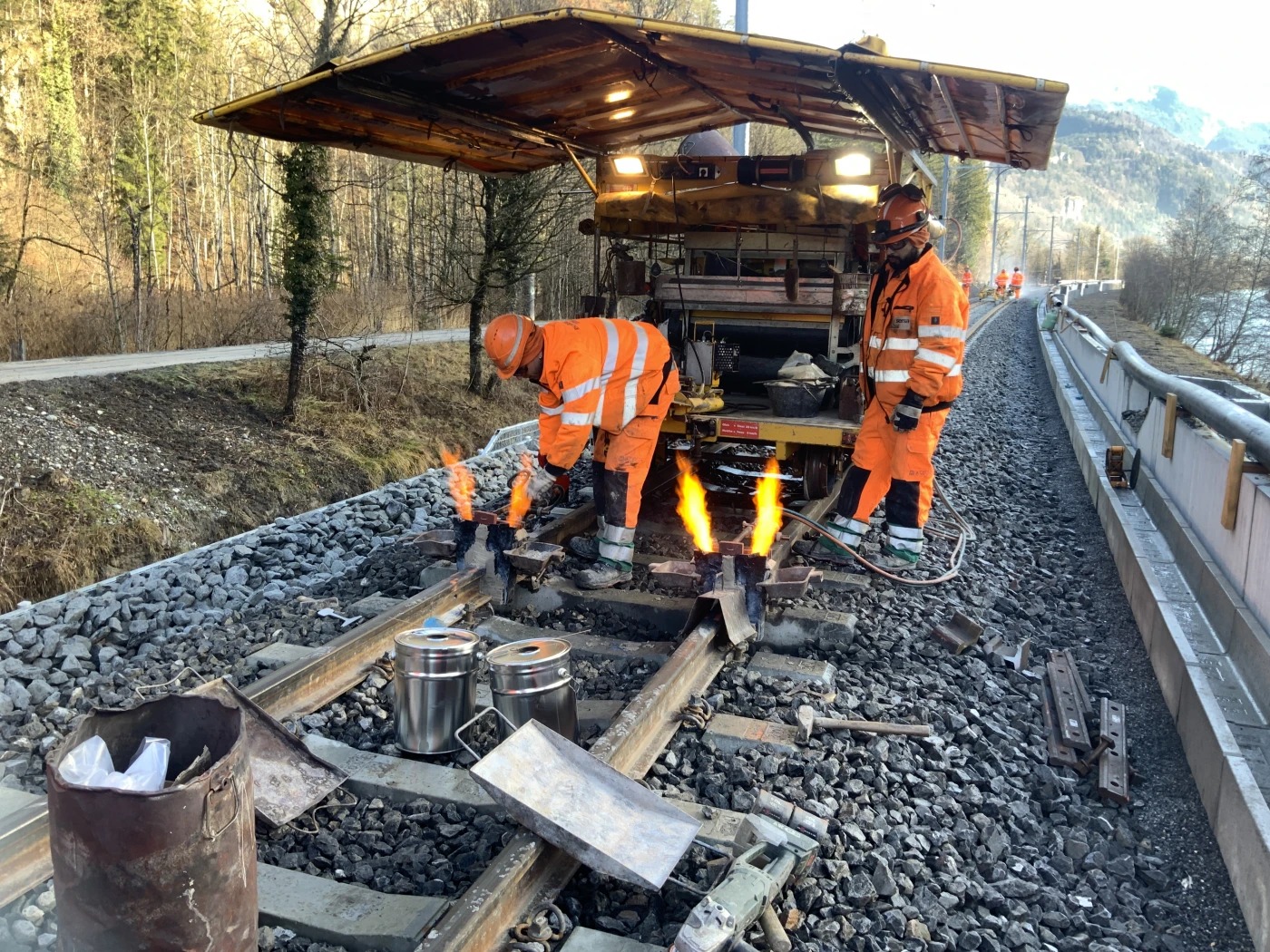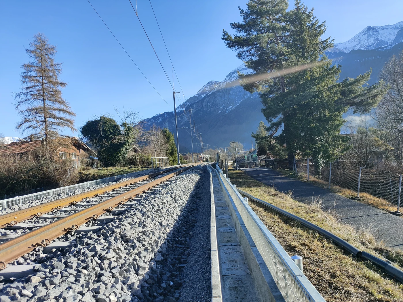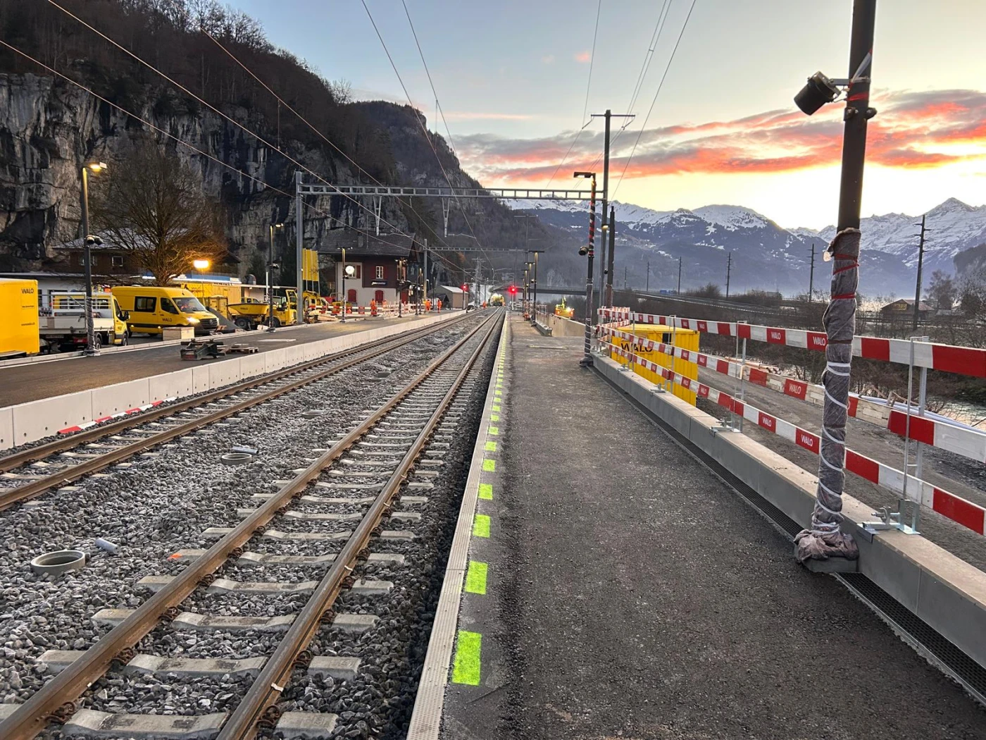 Seit März 2025 laufen zwischen Meiringen und Interlaken Ost die ersten Vorbereitungen für die Streckensperre. Dazu zählen Rodungsarbeiten, die Aufschüttung von Baupisten und die Erstellung von Installationsplätzen. Diese Arbeiten dauern bis Mitte Oktober an, während der Bahnbetrieb uneingeschränkt weiterläuft.