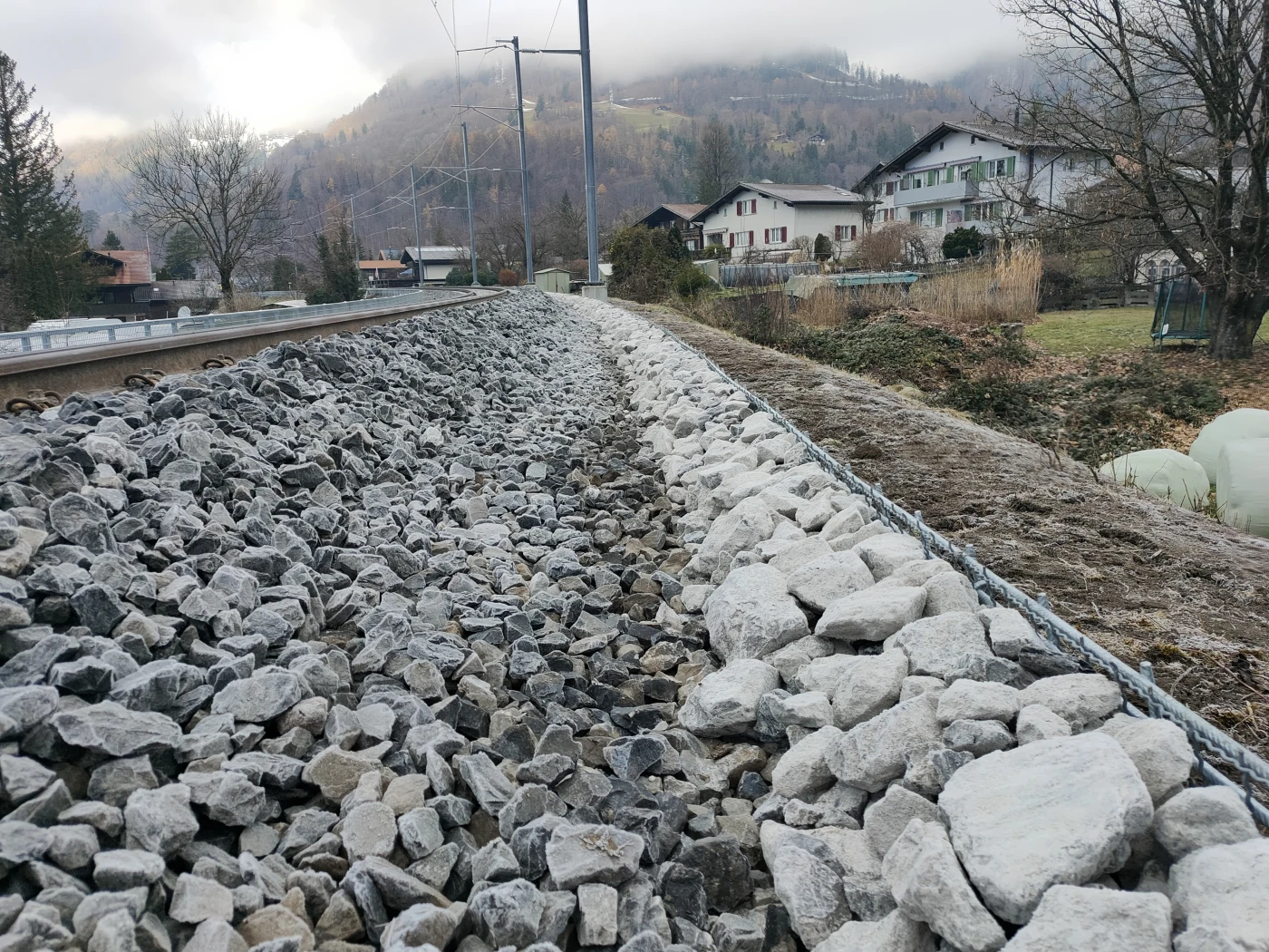 Die einspurige Bahnstrecke zwischen Meiringen und Brienzwiler, welche sich im Hochwassergebiet der Hasliaare befindet, wird umfassend saniert. Aufgrund regelmässiger Überflutungen und Unterspülungen des bestehenden Bahndamms und des Oberbaus durch Starkregen und Hochwasserereignisse ist die Infrastruktur der Bahnstrecke erneuerungsbedürftig. Dies hat auch negative Auswirkungen auf das dahinterliegende Kulturland. Daher wird die Strecke in zwei Etappen saniert. Die erste Etappe (Los 1 und 3) der Bauarbeiten wurde bereits in den Jahren 2022/2023 abgeschlossen, während die zweite Etappe (Junzlen–Unterbach) in dieser Totalsperre umgesetzt wird.